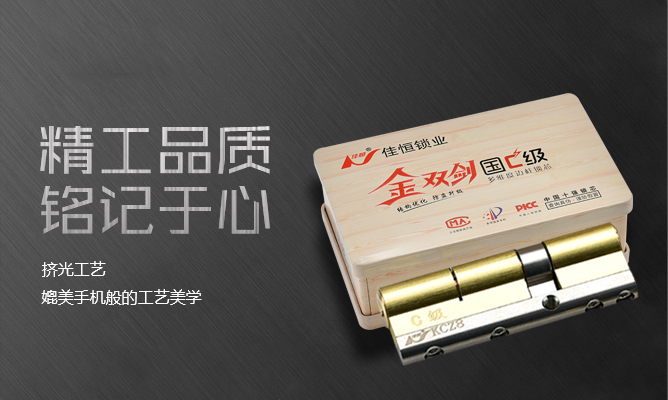佳恒鎖業(yè)堅(jiān)信產(chǎn)品創(chuàng)新是根本,為適應(yīng)市場(chǎng)發(fā)展,2012年公司搶先研發(fā)生產(chǎn)雙面葉片防盜鎖芯,推出鐵盒包裝,一度掀起行業(yè)市場(chǎng)熱潮,同行競(jìng)相模仿。緊接兩年公司陸續(xù)推出市場(chǎng)防掰斷尊貴型系列和升級(jí)款2.0佳恒雙劍金鑰匙系列。特殊的鎖芯結(jié)構(gòu)、新穎的鑰匙外觀(guān)以及特有的包裝設(shè)計(jì),贏(yíng)得了客戶(hù)和業(yè)內(nèi)的一致好評(píng)。